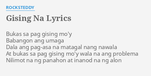 10 rows Rocksteddy - Gising Na Lyrics. Sandali eto na at sasabihin ko na nga. Dala ang pag-asa na matagal nang nawala.